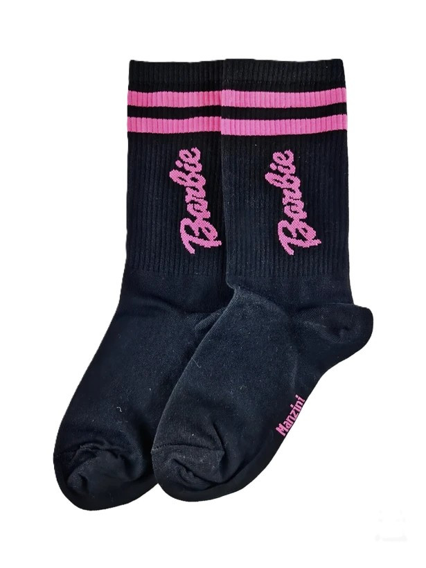 ✨ استایل نوستالژیک با جذابیت مدرن! 💅 طرفداران فیلم و دنیای باربی، این جوراب مخصوص شماست! جوراب ساقدار با طرح Barbie یک آیتم فانتزی و بسیار ترند است که استایل روزمره شما را متحول میکند. ترکیب رنگ مشکی به عنوان پسزمینه با لوگوی درشت و صورتی (Hot Pink) باربی، یک کنتراست قوی و خیرهکننده ایجاد کرده است. خطوط اسپرت صورتی در لبه ساق، یک حس ورزشی و کالجی به این جوراب اضافه کرده و آن را برای ست کردن با کتانی و استایلهای خیابانی (Street Style) ایدهآل میکند.