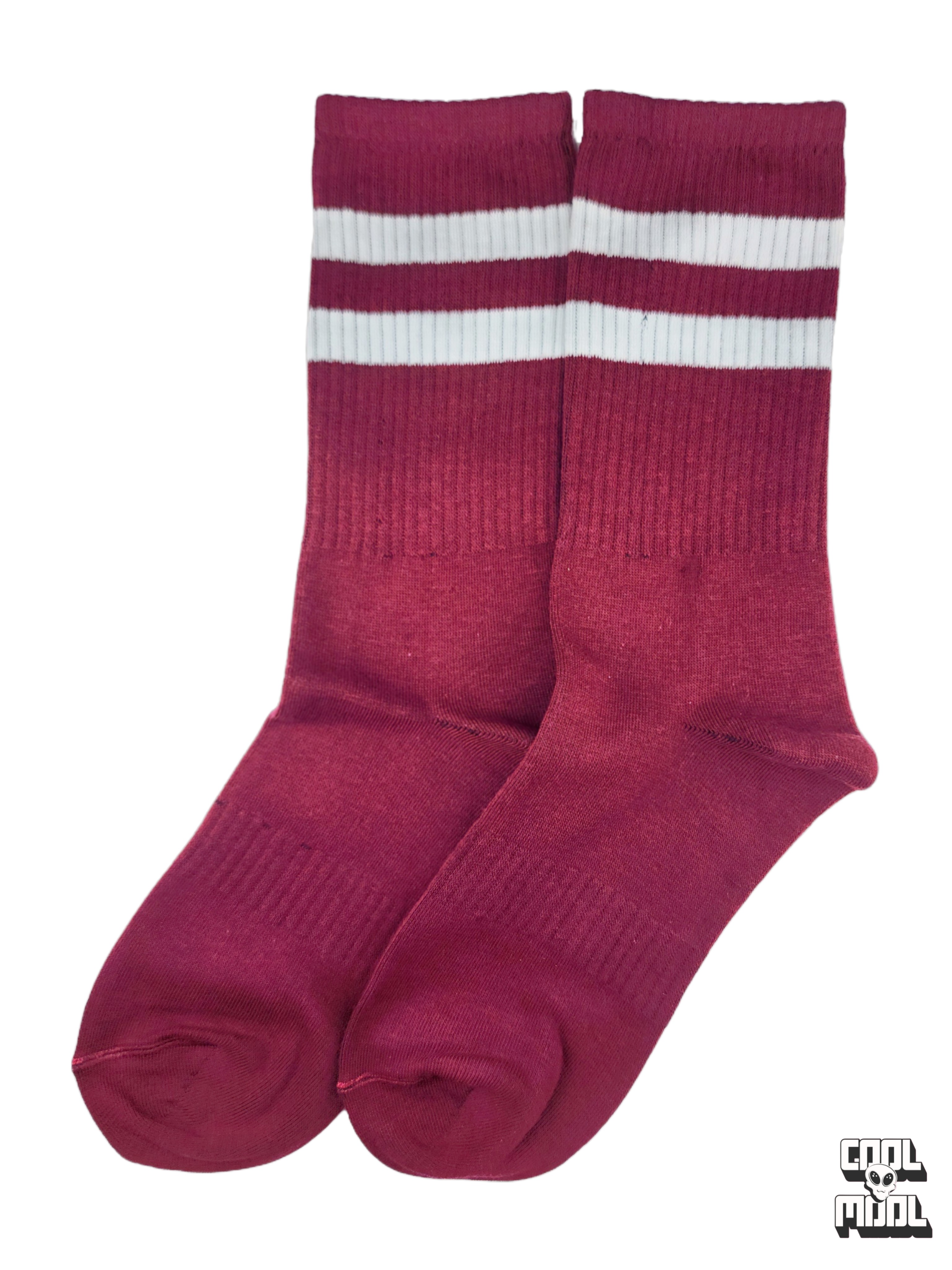 جوراب زرشکی (قرمز تیره) با خط سفید: جسور و خاص. رگه ای از رنگ و هیجان به استایل شما اضافه میکنه. عالی برای ستهای تیره! 🍷⚪