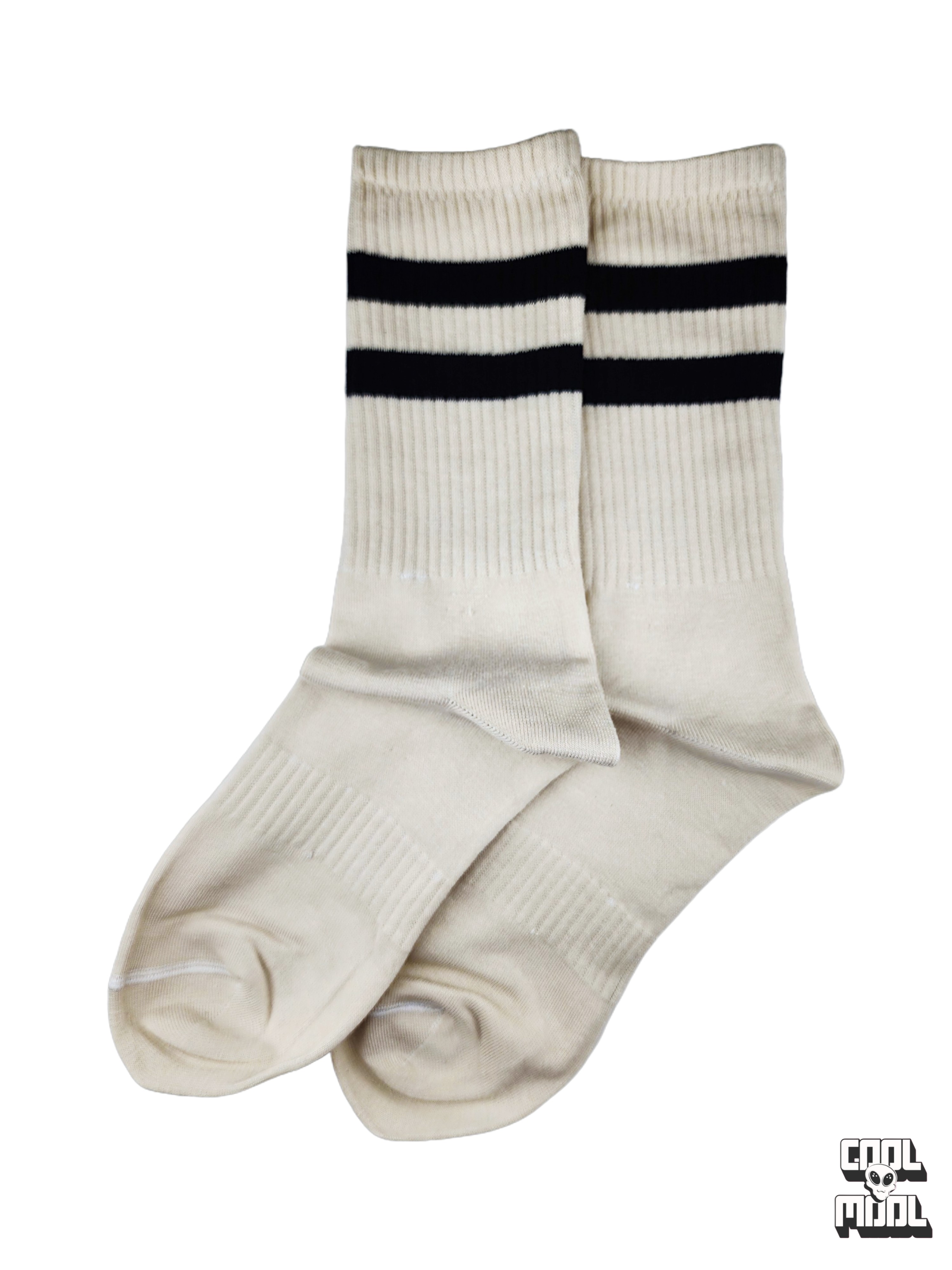 جوراب کرم / شیری با خط مشکی: ترندیترین رنگ فصل! ایدهآل برای استایلهای وینتیج، فشن و نچرال. 🍦⚫