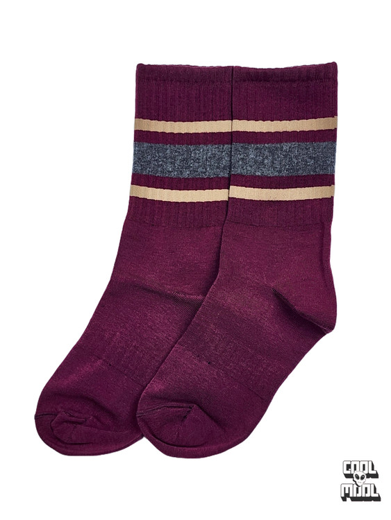 ✨ جزئیات طراحی فشن (خطوط ترند): وجود دو یا سه خط رنگی موازی در قسمت بالای ساق، یک المان کلاسیک و در عین حال همیشه ترند است که به راحتی با لوگوی برند کتانی شما یا رنگ کلاهتان ست میشود. این خطوط، جوراب را از سادگی درآورده و آن را به یک اکسسوری بیانیه تبدیل میکنند.
